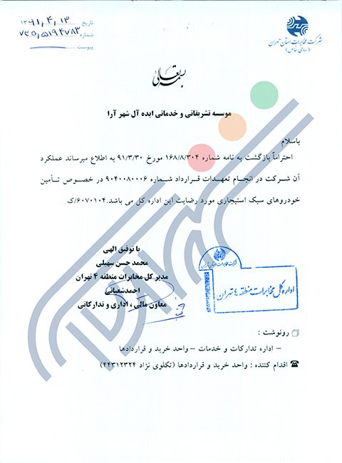 آدرس: تهران خیابان شهر آرا، بالاتر از گذرنامه، پلاک 68،طبقه 4، واحد 6